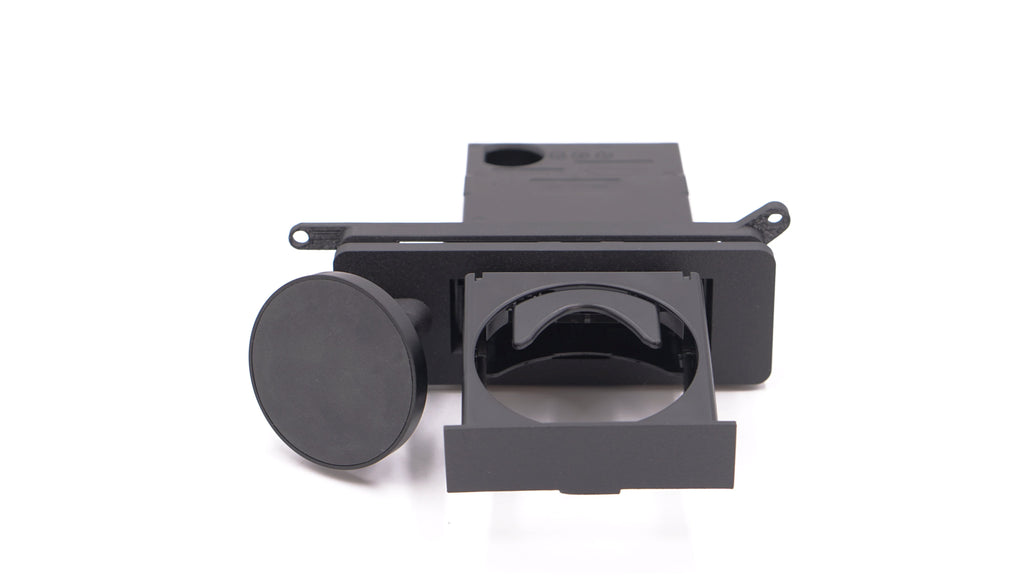 We utilized the cup holder from AUDI due to its popup nature but also its slimline figure needed to make it fit within the factory ashtray.